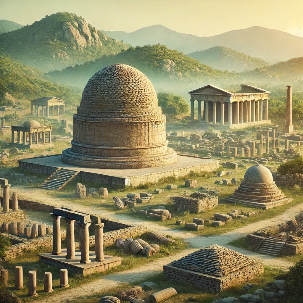 탁실라의 가장 유명한 유적 중 하나는 다르마라지카 스투파입니다. 이 스투파는 아쇼카 대왕이 건립한 것으로, 부처님의 사리를 봉안한 신성한 장소로 여겨졌습니다. 둥근 돔 형태와 섬세한 조각이 특징인 이 유적은 고대 건축 기술의 정수를 보여줍니다.