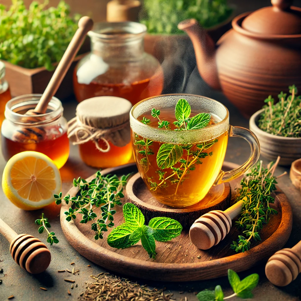 타임은 항균, 항바이러스 효과가 있는 팀올(Thymol)을 함유하고 있으며, 민트는 비타민 C와 항산화 성분이 풍부하여 면역 체계를 강화하는 데 도움을 줍니다. 꾸준히 섭취하면 감기와 같은 감염성 질환 예방에 효과적입니다.