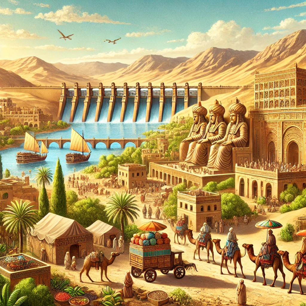 사바 왕국의 번영의 중심에는 마리브 댐이 있었습니다. 이 거대한 댐은 사막의 물 부족 문제를 해결하고, 농업 생산력을 크게 증가시켜 왕국의 부를 축적했습니다. 또한 사바인들은 사막 교역로를 통해 '향신료의 길'을 구축했습니다. 이 길은 아라비아 반도를 가로지르며, 오아시스를 따라 전략적으로 설치된 교역소를 통해 상인들이 안전하게 여행할 수 있도록 했습니다.