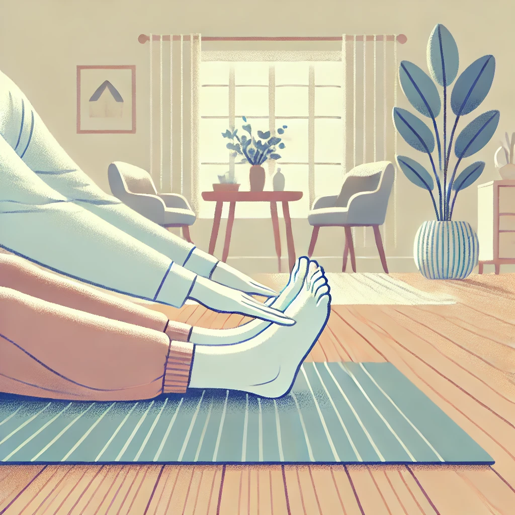- 앉은 자세에서 발을 바닥에 두고, 발가락을 위로 들어올린 뒤 천천히 바닥으로 내립니다.
