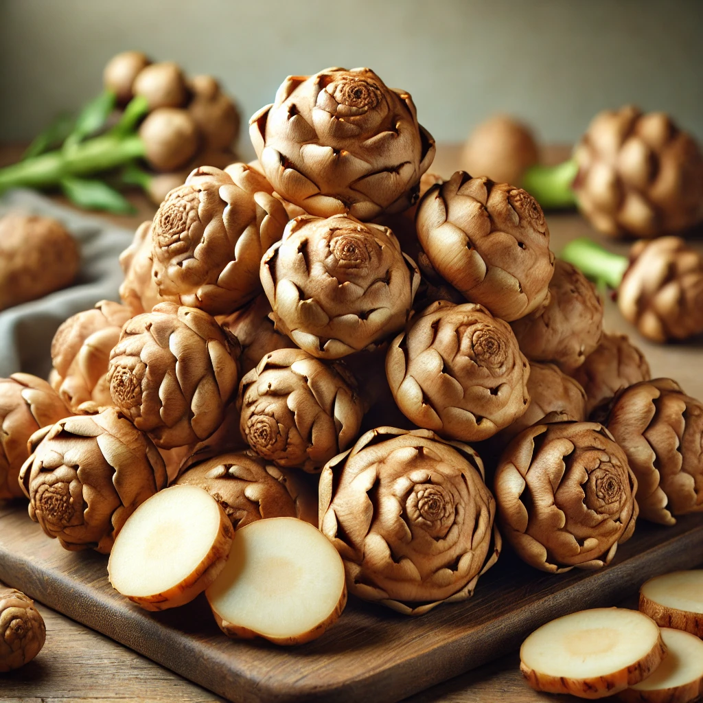 돼지감자는 이눌린이 풍부하게 함유된 뿌리채소로, 혈당 조절과 인슐린 민감도 향상에 도움을 줄 수 있습니다. 이눌린은 프리바이오틱 섬유소로 작용하여 장내 유익균을 증가시키고 탄수화물의 흡수를 완만하게 하여 혈당 급등을 예방하는 데 기여합니다.