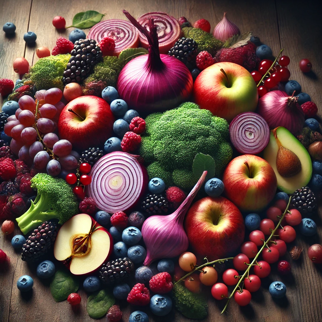 퀘르세틴(Quercetin)은 강력한 플라보노이드 항산화제로, 다양한 과일과 채소에 풍부하게 함유되어 있습니다. 양파, 사과, 베리류, 포도, 브로콜리 등에 많이 포함되어 있으며, 항산화 및 항염증 효과로 건강 유지에 도움을 줍니다.