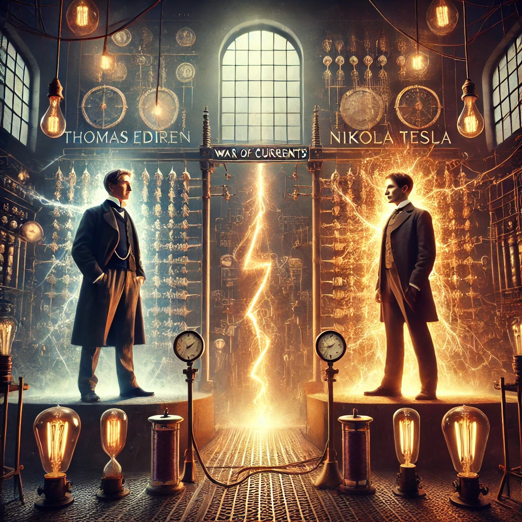 19세기 말, 전 세계는 전기의 힘을 발견하며 산업 혁명을 가속화하고 있었습니다. 이 시기, 두 명의 천재 과학자, 토머스 에디슨과 니콜라 테슬라는 전기의 표준을 둘러싸고 치열한 경쟁을 벌였습니다. 이 경쟁은 역사상 유명한 '전류 전쟁'으로 불리게 되었습니다.