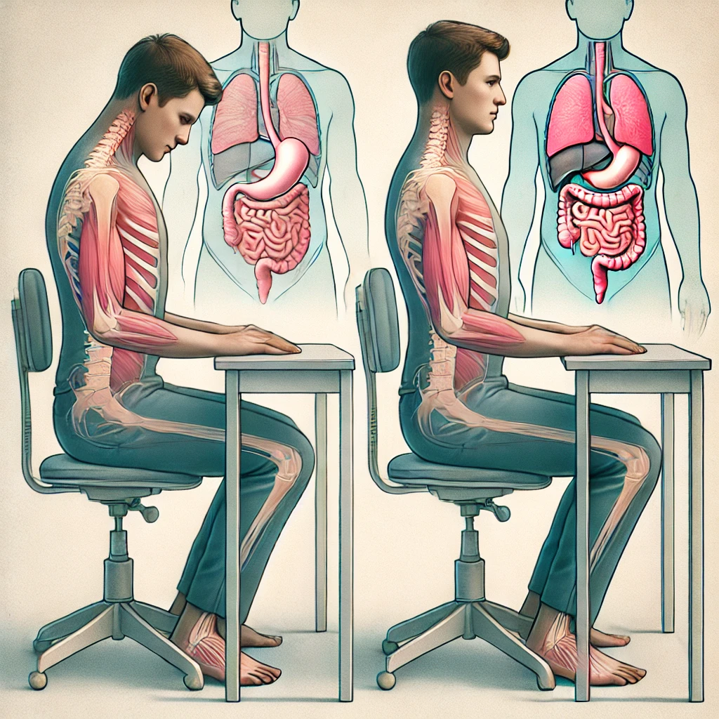 앉은 자세로 하루 대부분을 보내는 현대인들은 종종 등과 허리를 구부정하게 유지합니다. 그러나 이렇게 장시간 나쁜 자세를 유지하면, 단지 근골격계 문제를 일으키는 것뿐 아니라, 위와 장 같은 소화기관에도 물리적인 압박을 가하게 되어 소화불량, 가스 축적, 변비 등 다양한 소화기 문제를 유발할 수 있습니다.