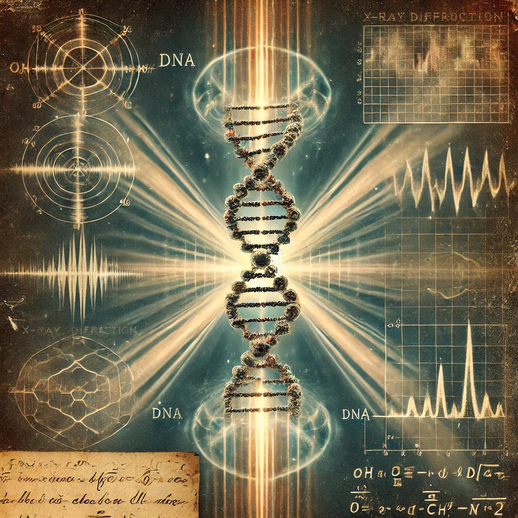 킹스 칼리지 런던의 로절린드 프랭클린은 X선 회절을 이용해 DNA의 구조를 연구하던 중, 1952년 5월에 '사진 51'이라 불리는 X선 회절 이미지를 촬영했습니다. 이 사진은 DNA의 B형 구조를 보여주는 선명한 X자 패턴을 담고 있어, 이중나선 구조의 결정적인 증거가 되었습니다.