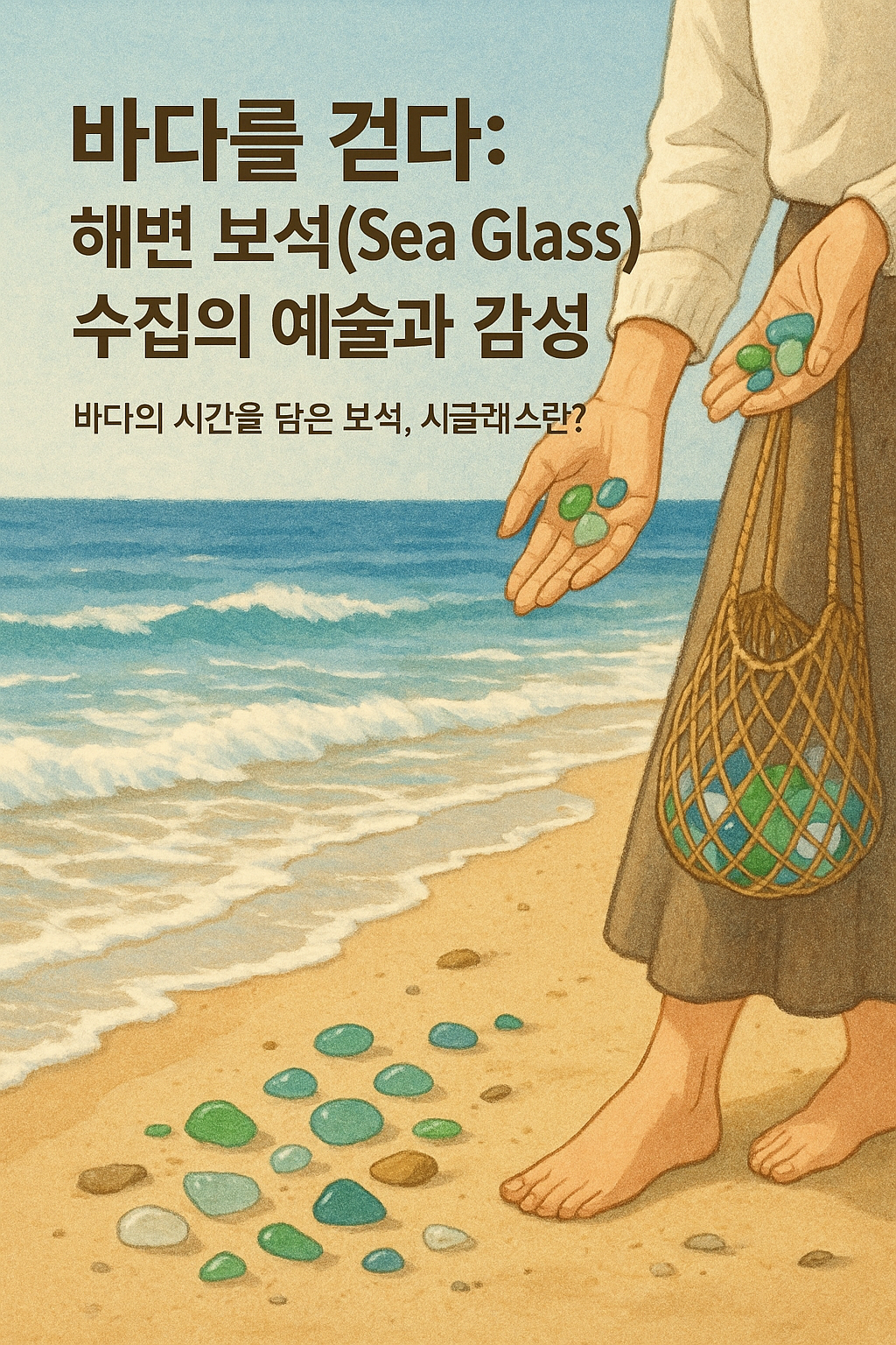 해변을 천천히 걸으며 작은 보석을 찾는 행위는 마음을 안정시키고 집중력을 키우는 명상적 활동입니다.