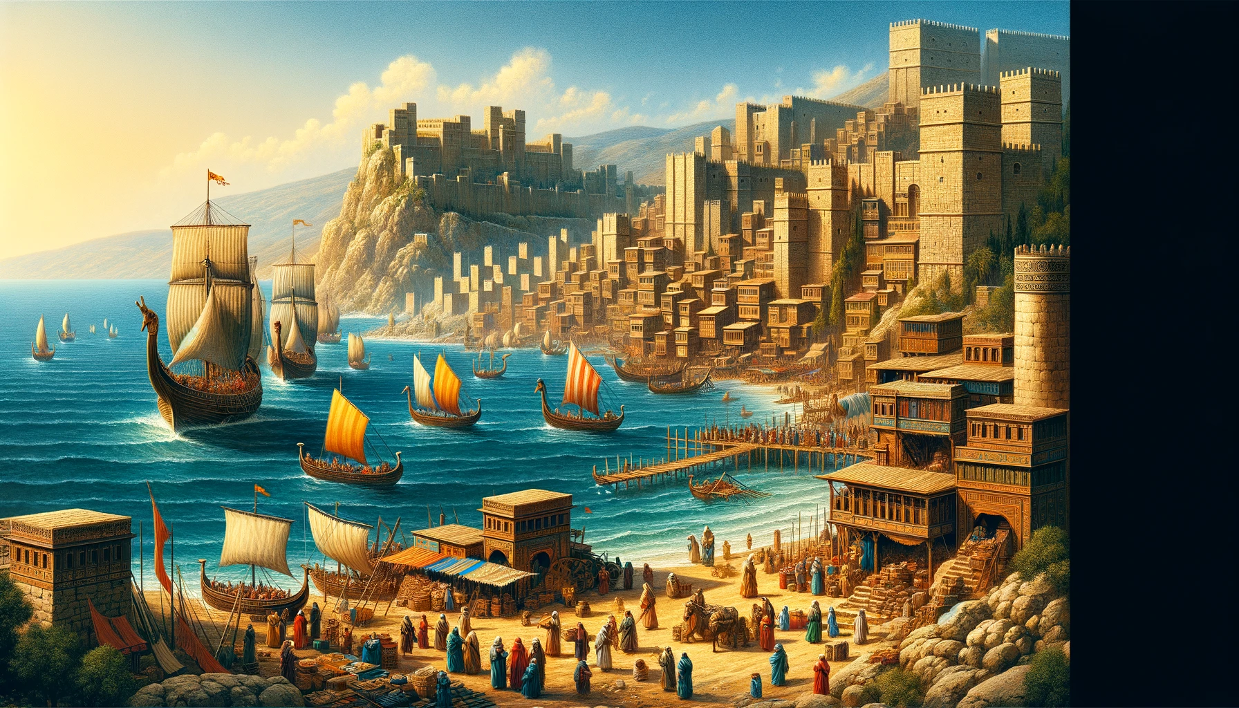 페니키아의 다른 중요한 도시인 시돈은 배를 건조하는 능력으로 유명했습니다. 시돈은 지중해 전역으로 나아가는 중요한 출발지 역할을 하며, 페니키아의 선박 건조 기술을 발전시켜 대규모의 무역을 가능하게 했습니다. 시돈의 장인들은 뛰어난 목재와 금속 공예 기술을 갖추고 있어, 이곳에서 제작된 배는 당시 가장 내구성이 뛰어났습니다. 이 도시는 또한 향수 제조로 유명하여 페르시아 제국과 이집트로 많은 물품을 수출했습니다.