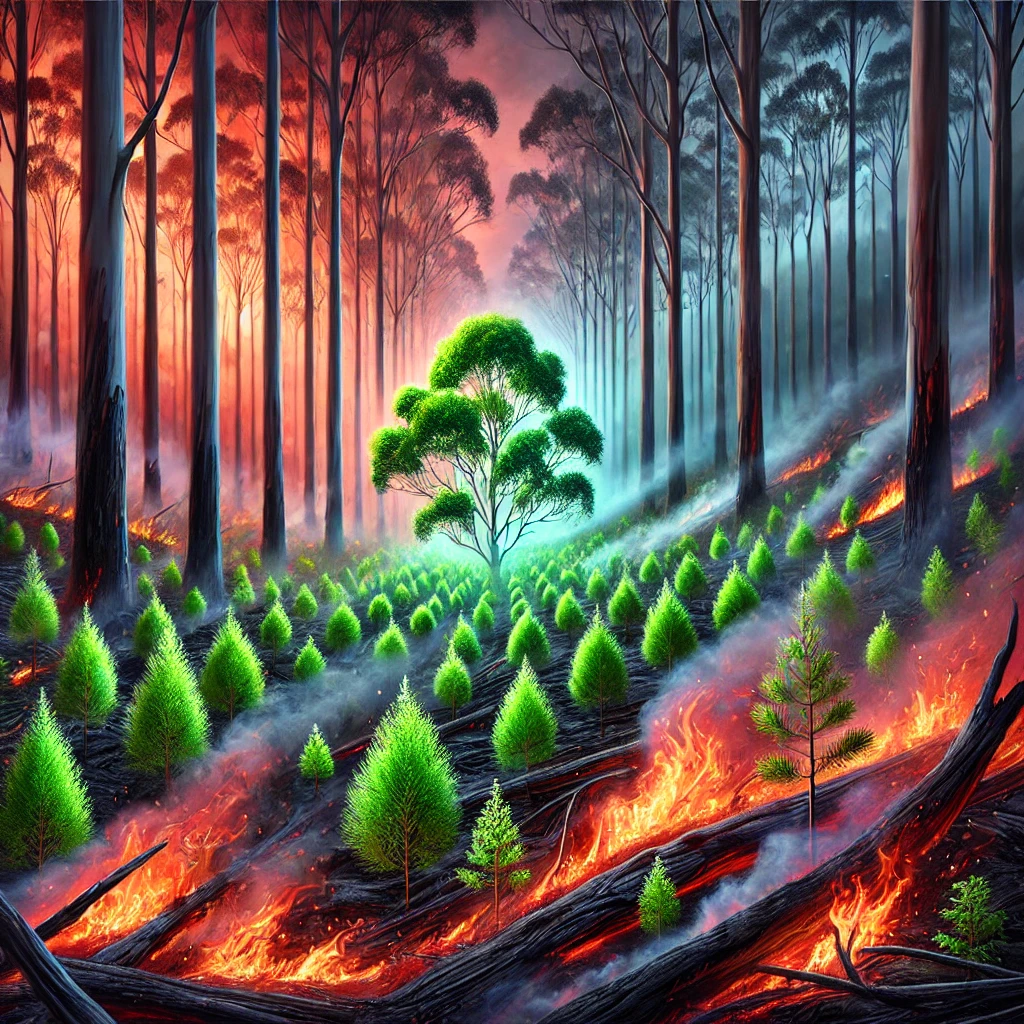 유칼립투스와 같은 나무들은 불을 이용해 경쟁자를 제거하고 자신들이 독점적으로 자랄 수 있는 환경을 만듭니다. 불이 지나간 후에는 흙이 풍부한 영양분으로 가득 차며, 유칼립투스 씨앗은 고온에서만 발아하기 때문에 이러한 조건은 완벽한 재생의 기회를 제공합니다.